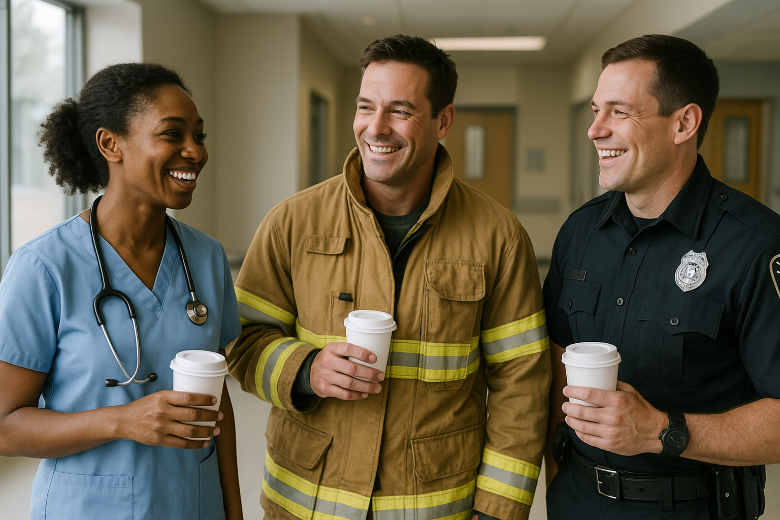We've been there-The endless alarms, the cold coffee, the back-to-back doubles, so we designed gear that gets it, soft enough for the post shift naps, bold enough for the on duty PRIDE. The Nurses, Firefighters, EMTs and Police, We salute every shift WARRIOR out there!